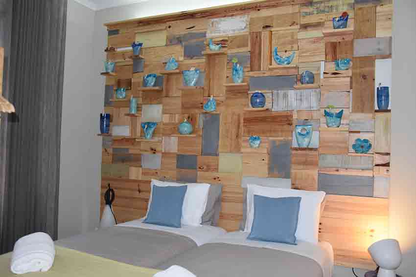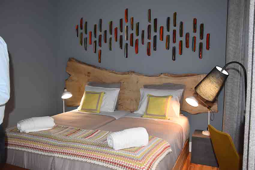 “A cerâmica faz parte da história da cidade e é a sua arte mais representativa”, considera o proprietário, que entende como um meio de excelência para fazer uma decoração única e diferenciada, envolvendo os artistas locais. Ana Sobral, Elsa Rebelo, Francisco Correia, Bolota, Cláudia Canas e Mário Reis foram convidados a conceber peças para cada um dos quartos, que têm o seu nome.