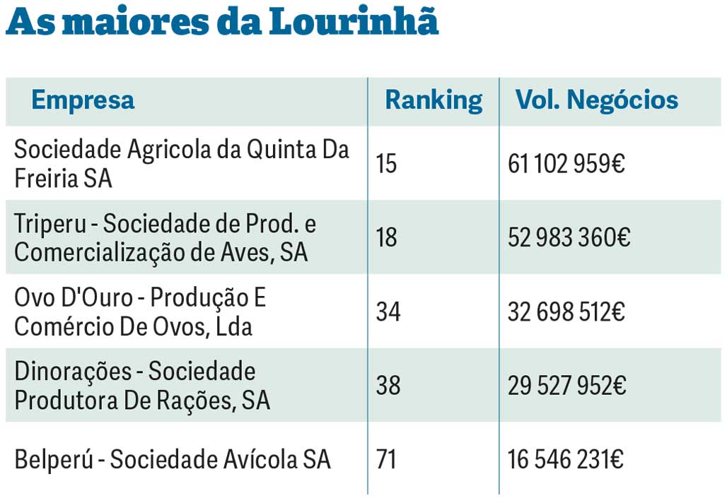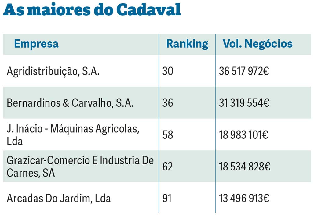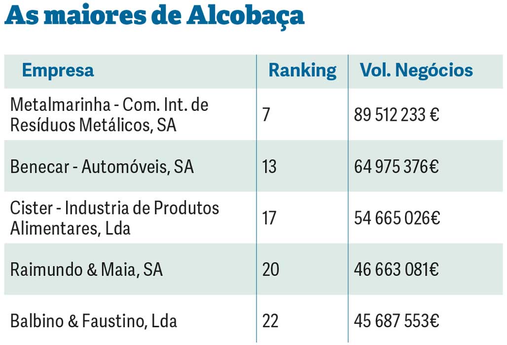 Alcobaça é o segundo mais representado, com 39 empresas que faturaram em conjunto 642 milhões de euros.