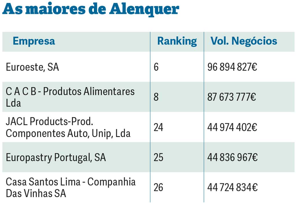Alenquer fica com apenas menos duas empresas do que o concelho alcobacense, mas supera em faturação, com 774,4 milhões de euros.