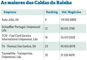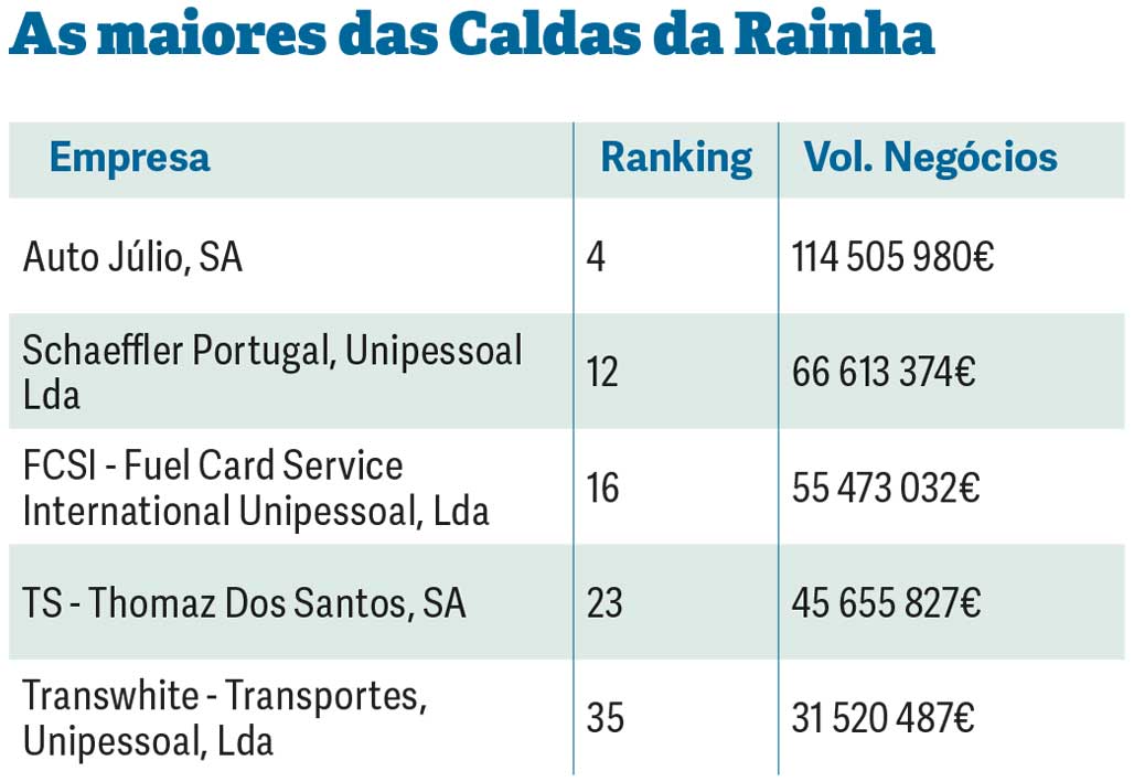 Atrás destas, com um conjunto de 30 empresas que faturaram 574 milhões de euros surge Caldas da Rainha.