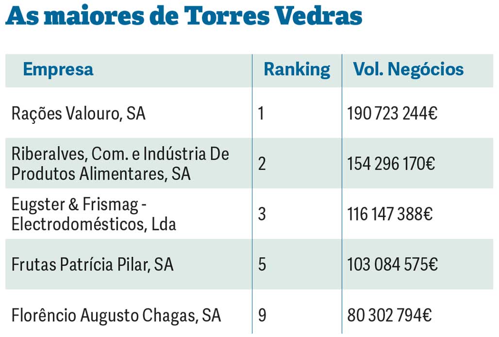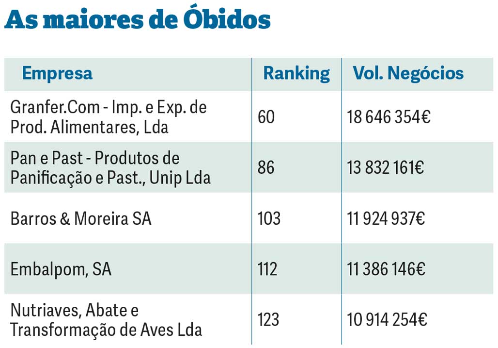 Óbidos, com oito empresas, é o que mais se aproxima da dezena. O grupo de empresas obidense atinge os 89,7 milhões de euros.