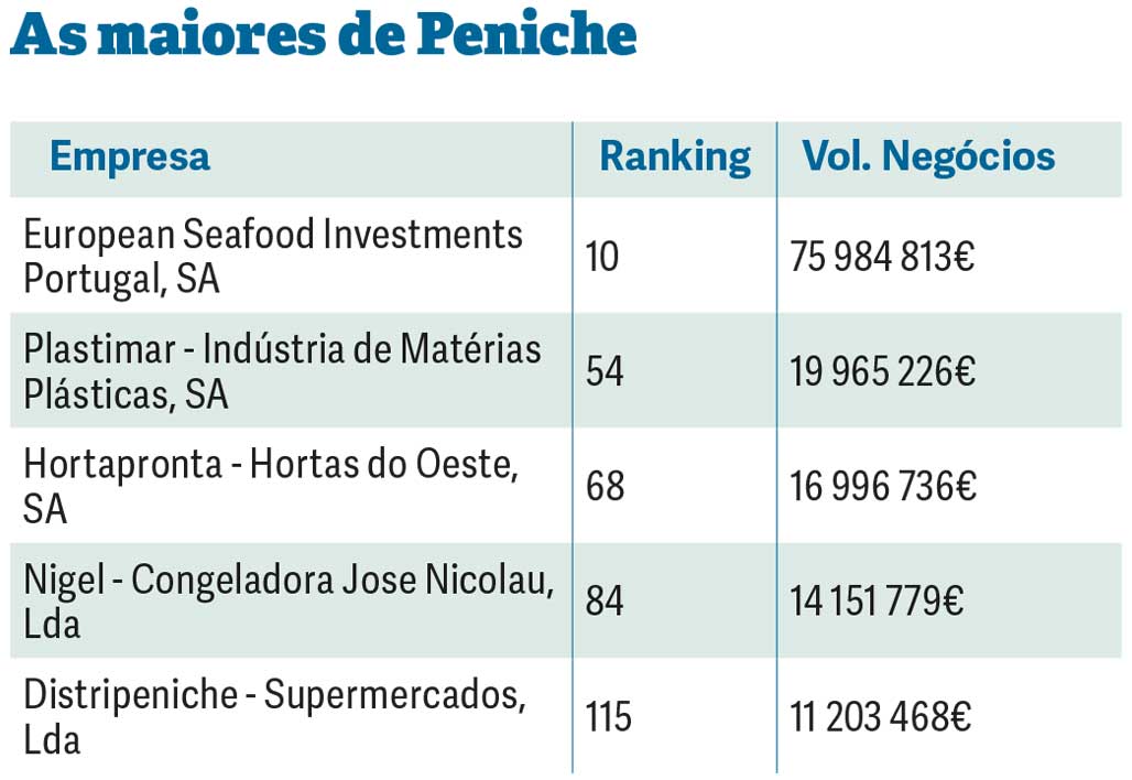 Peniche tem menos uma empresa na lista, mas somaram 144,3 milhões de euros em vendas.