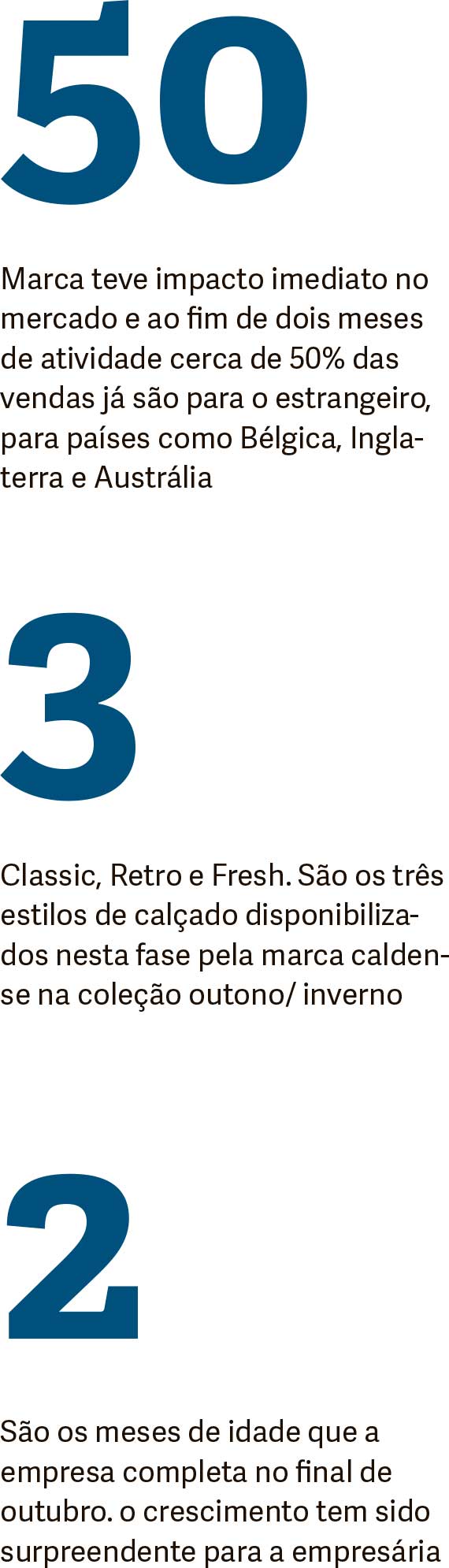 Assim, a Azine Footwear pretende tirar maior proveito desse know-how da família, sem colocar a atividade em risco. “É uma empresa e uma marca à parte. Eles são meus fornecedores, para não correr o risco de se fazer um investimento e afetar o negócio deles se corresse mal”, salienta Catarina Norte, que aplicou todo o rendimento de um estágio profissional que tirou após a licenciatura.