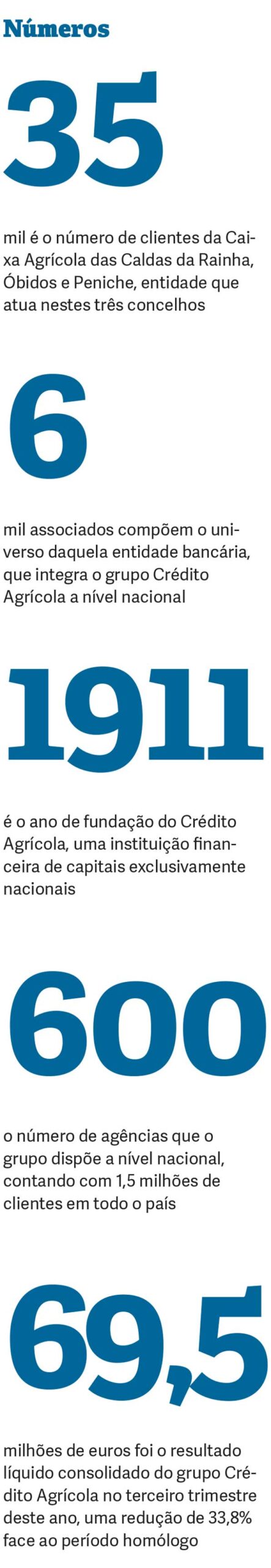 No que diz respeito ao crédito a clientes, a Caixa Agrícola de Caldas, Óbidos e Peniche subiu de 155 para 157 milhões de euros no terceiro trimestre do ano, enquanto os recursos de clientes passaram de 304 para 337 milhões de euros, numa variação positiva de 11%.