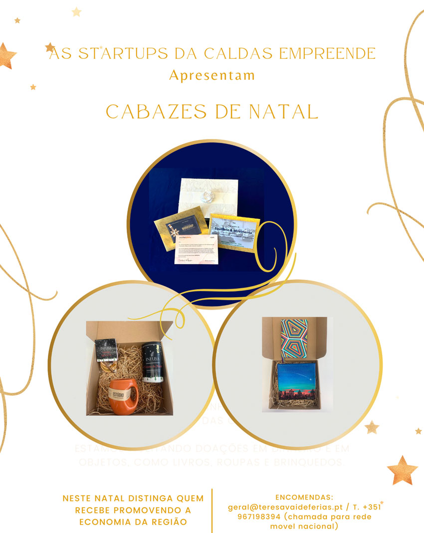 As startups do Caldas Empreende, incubadora dirigida pela AIRO, criaram cabazes de Natal, numa iniciativa conjunta de cooperação entre empresas, dirigida aos empresários da região, colocando-lhes à disposição uma opção de ofertas que cria valor e permite, aos clientes, ofertas distintas que promovem a região. Mais informações e encomendas, contactar geral@teresavaideferias.pt, ou através do número 967 198 394.