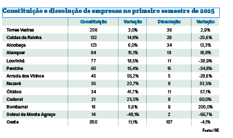 O primeiro semestre de 2025 revelou-se particularmente dinâmico para a constituição de empresas na região Oeste, que registou 850 novas sociedades, mais 11,1% do que no período homólogo do ano passado. Este crescimento contrasta com o ritmo nacional, onde o aumento foi bem mais moderado, de apenas 1,7%. Também no campo das dissoluções o Oeste apresentou um desempenho positivo, com uma redução de 4,1% face ao período homólogo do ano passado, num enquadramento em que o país como um todo registou menos 6,8% de empresas encerradas. Os números confirmam que a região mantém um ambiente favorável à atividade empresarial, com uma base de empreendedores ativa e um tecido económico em diversificação.