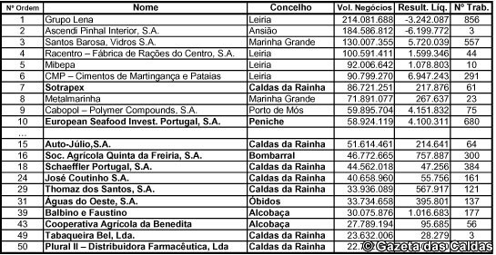 Alcobaça aparece na lista em 39º lugar com a Balbino e Faustino, que se dedica ao comércio de madeiras. Com um volume de negócios de 30,1 milhões de euros, teve lucros de 1 milhão de euros.