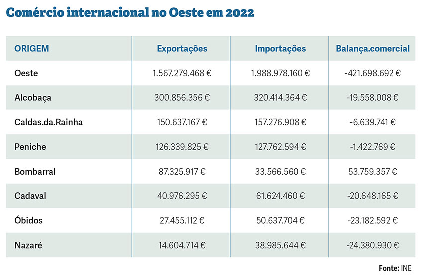 Nota ainda para o Bombarral, que não só é o único concelho da região com balança comercial positiva, como melhorou esse indicador em 37,8%. ■