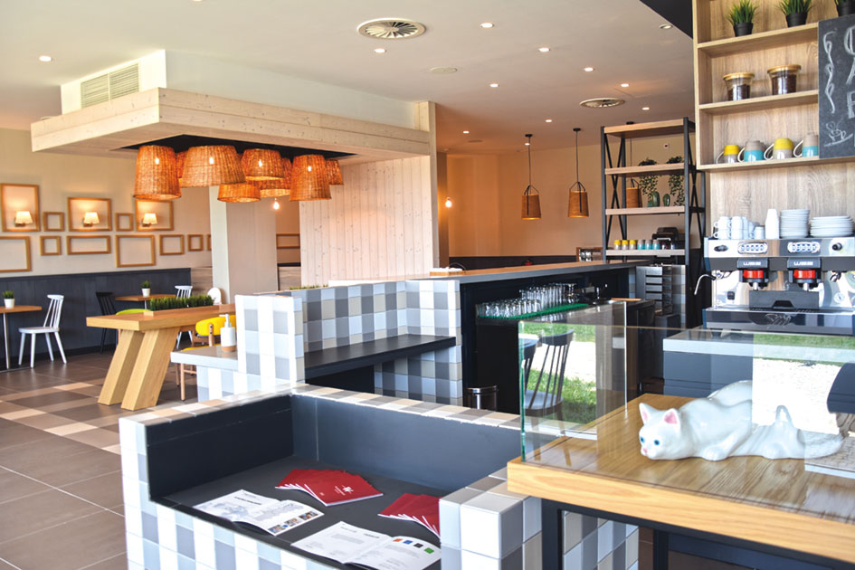 A marca, que tem por lema “receber o cliente em nossa casa” disponibiliza, junto à receção, uma zona de estar que convida à partilha de momentos entre os clientes, explica Maria José Santos, diretora regional da zona sul da FlagWorld, dando conta da televisão de grandes dimensões que permite, por exemplo, acompanhar um jogo de futebol, a ligação à internet e os vários espaços de trabalho. Numa parede é possível apreciar as peças de cerâmica da Secla, mas também várias figuras de movimento e outras obras, emprestadas pela Fábrica de Faianças Bordalo Pinheiro. Do outro lado do piso térreo encontra-se a sala de pequeno almoço e a zona do bar, que terá disponível tapas, paellas ou tábuas de queijo, a qualquer altura do dia.