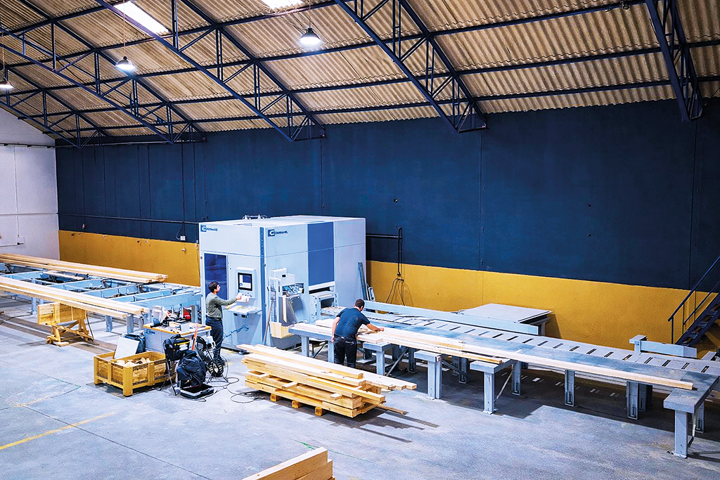 “A procura tem aumentado, o que nos obrigou a encontrar soluções”, explica o empresário. Com esta máquina de fabricação automática conseguem, além de aumentar a produção das estruturas de casas, “aumentar a qualidade de fabricação, com maior precisão, rigor e eficiência”. Mas este investimento levou à necessidade de mudar de instalações, para terem uma área maior, encontrando o espaço ideal, numa zona central do Bombarral, no antigo armazém Gustavo e Abreu. Fizeram obras e instalaram o novo equipamento, num espaço que por agora está arrendado, mas com opção de compra, que pretendem exercer. “Seria um erro instalar no antigo armazém”, aponta. O novo espaço tem 1300 metros quadrados de área coberta, que é um aumento face aos anteriores menos de mil. Acresce que agora têm um terreno com 8000 metros quadrados, que permite ampliar instalações com mais um pavilhão com 1200 metros quadrados.