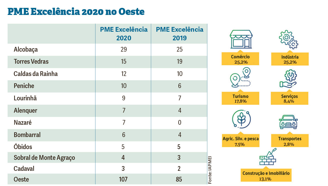 Além das Caldas e Alcobaça, Peniche (10), Nazaré (7), Alenquer (7), Bombarral (6) e Cadaval (3) também registam novos recordes de empresas PME Excelência.