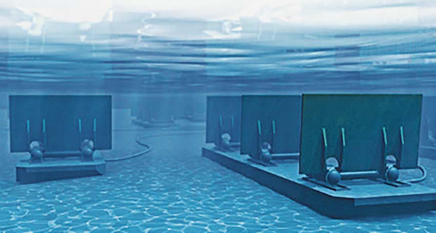 A energia das correntes possui uma densidade energética dez vezes superior à da energia eólica e 100 vezes superior à da radiação solar. A densidade energética é a quantidade de energia disponível em determinada área (por exemplo: 50 kw/h por metro quadrado).