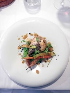 A refeição consistiu numa entrada com um croquete de alheira maçã e creme de abóbora, prosseguiu com um prato de peixe com raia em caldeirada, maçã, funcho, espargos e bimis e um prato de carne com uma codorniz recheada com maçã, morcela e especiarias com puré de ervilhase ovo de codorniz. O almoço culminou com uma sobremesa de tarte de maçã em texturas, que antecedeu o corte do bolo de aniversário.