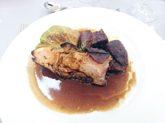 O prato principal do almoço, que consistiu numa barriga de porco malhado assada com ervas da serra, foi “o mais difícil” de confecionar, segundo confessou o professor e chef Frederico Neto, salientando que se trata de um produto “com muita gordura” e que obrigava a “trabalhar de forma muito prolongada”. O resultado final mereceu a aprovação dos presentes, bem como a sobremesa, uma trouxa de ovos que fez lembrar os doces conventuais de Alcobaça.