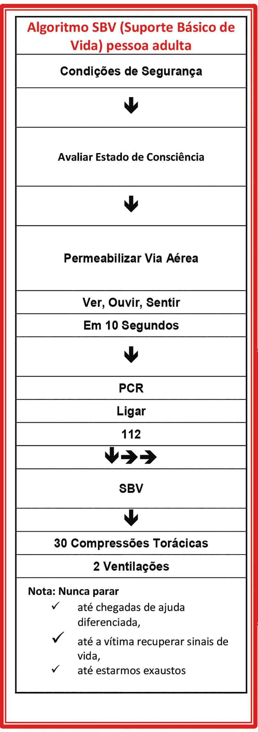 Conhecendo o protocolo de atuação ou o algoritmo de SBV (Suporte Básico de Vida) ou SBVDAE (Suporte Básico de Vida com Desfibrilhador Automático Externo) é possível salvar uma pessoa, criando mecanismos de suporte, que integrados numa ajuda diferenciada, em ambiente pré hospitalar com Médico Enfermeiro e Bombeiros a pessoa sobreviva sem sequelas e com qualidade.