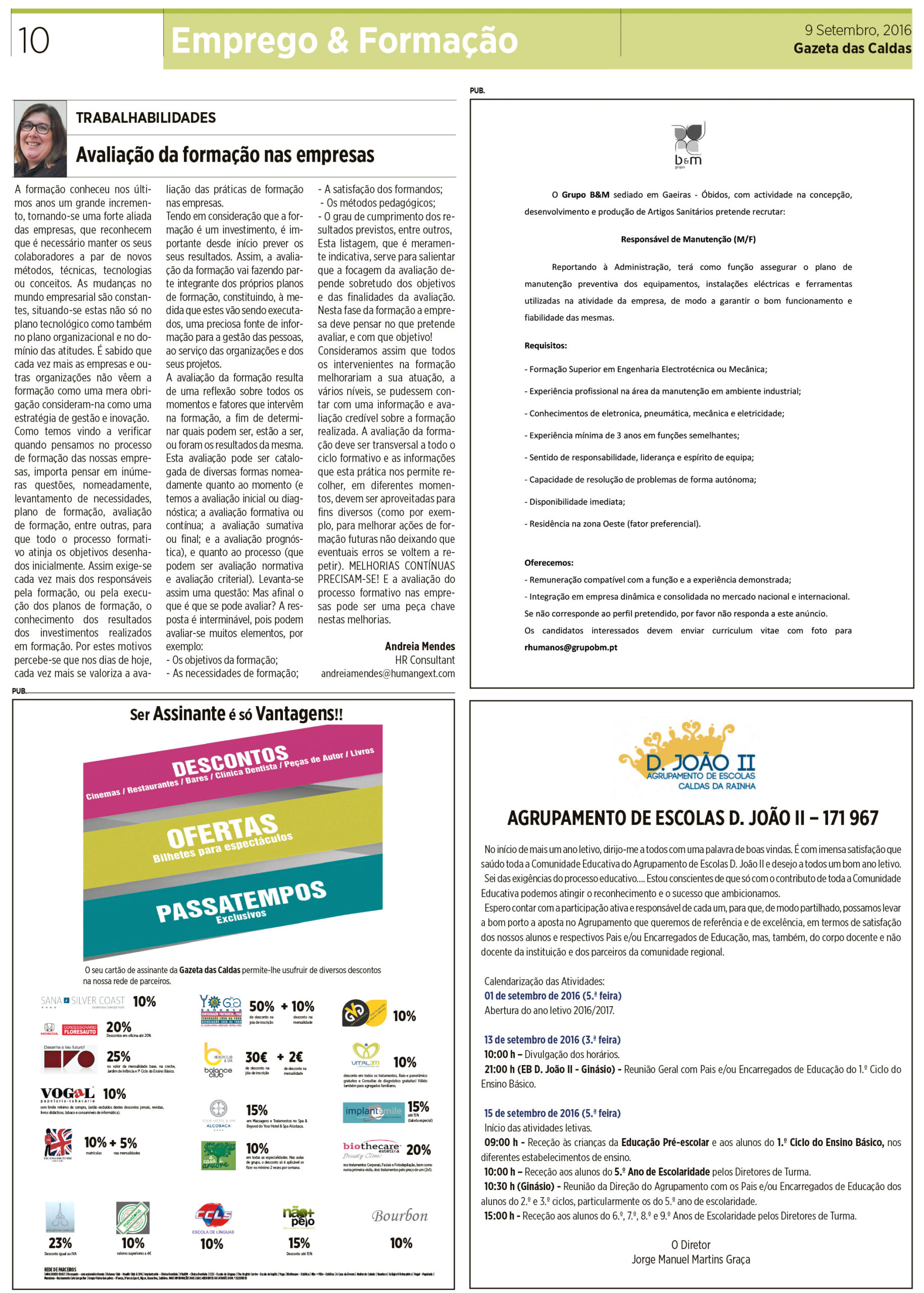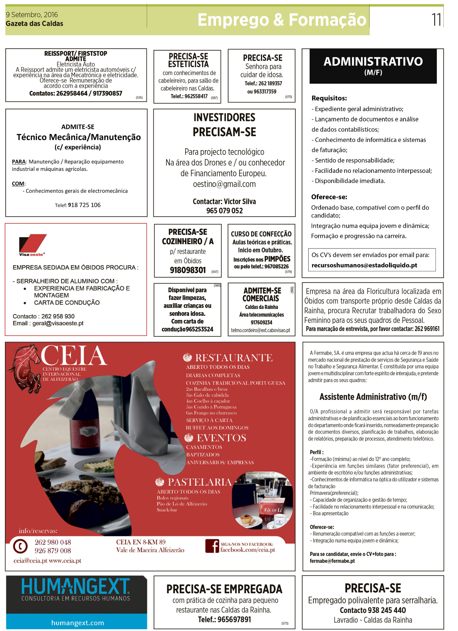 InícioEmprego e Classificados Caldas da RainhaEmprego & Classificados 09-09-2016