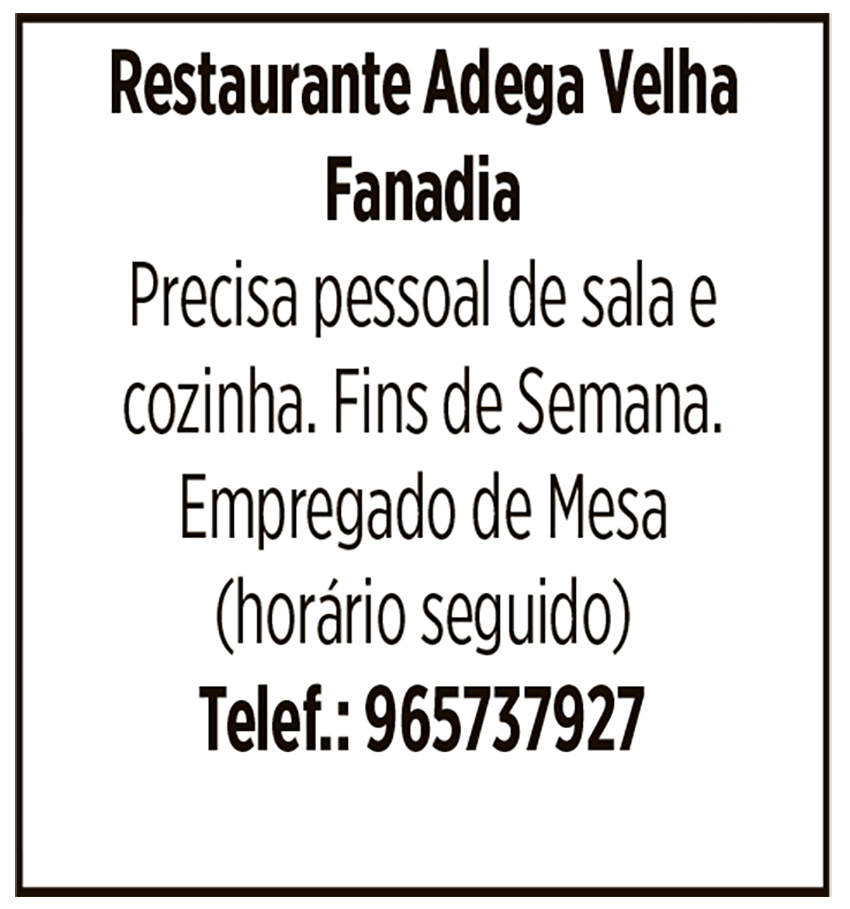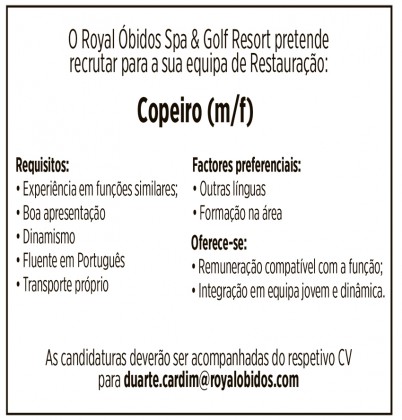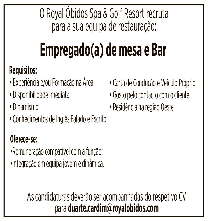 InícioEmprego e Classificados Caldas da RainhaEmprego e Classificados | 29-03-2018