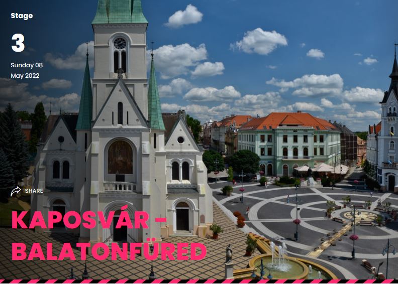 A terceira etapa do Giro d’Italia deste ano terá início em Kaposvar e terminará, 201 quilómetros depois, em Balatonfured, na Hungria. A tirada decorre ao redor do lago Balaton, conhecido como o mar húngaro.