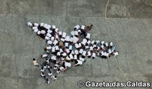 No âmbito das Comemorações do 25 de Abril, Inês Silva, que efectua um estágio curricular, do curso de especialização tecnológica de Serviço Social e Desenvolvimento Comunitário, na Associação Social e Cultural Paradense (Chão da Parada), pensou e criou todas as condições para realizar uma actividade com as crianças da Instituição (creche, pré-escolar e 1.º ciclo).A actividade, apelidada de “Pomba Branca” como referência ao significado inerente ao dia da Liberdade (25 de Abril) pediria uma participação aparentemente simples, bastando que as crianças se deslocassem ao polidesportivo e que vestissem, nesse momento, uma tshirt ou camisola branca. Não tão simples foi conseguir que se mantivessem dentro de uma pomba tracejada a giz para que fosse tirada uma fotografia de um ponto o mais alto possível.Pois bem, para que fosse possível atingir o objectivo de fotografar uma pomba preenchida pelos corpos das crianças, foi imprescindível e preciosa a colaboração dos Bombeiros Voluntários de Caldas da Rainha que nos trouxeram a sua “Barquinha” (que tem uma escada elevatória de 18 metros). Posto isto, e depois de uma boa disposição contagiante das crianças, quando a escada se elevou, foi possível o “momento Kodak”. A ASCP agradece a todos os que contribuíram para que fosse possível concretizar e registar este momento.