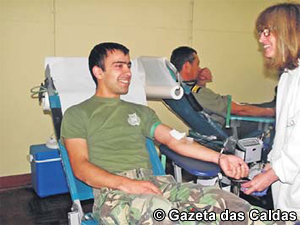 Participaram nesta doação de sangue, algumas dezenas de militares e funcionários civis da Escola e comunidade local de Caldas da Rainha.