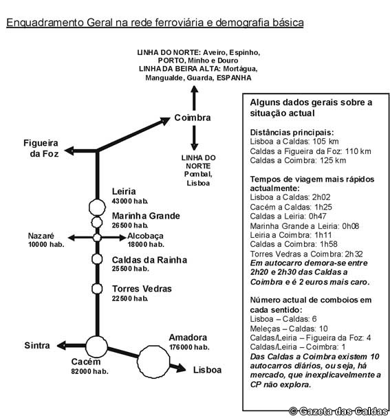 Neste campo está a apresentada justificação para a anunciada supressão do serviço de passageiros na linha do Oeste para norte das Caldas. Importa assim explanar algumas questões fundamentais para que a discussão e decisão possam ser feitas em plena consciência por todas as partes envolvidas, em vez do “manto diáfano da fantasia” que sobre a questão foi, parece-nos, propositadamente lançado.