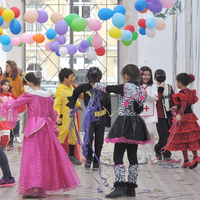 Durante três horas, as crianças dançaram, participaram em concursos de dança, máscaras e fantasias, fizeram jogos e lancharam, tudo sob o olhar atento dos pais/monitores.