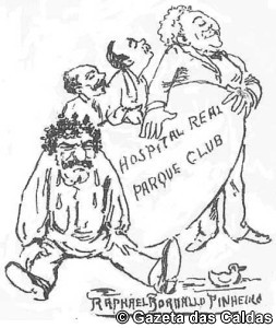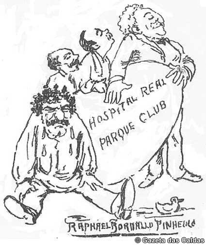 Que estranho! Rafael Bordalo Pinheiro, o tão criativo ceramista, o tão temido caricaturista, o homem do crayon implacável, de joelhos e mãos erguidas implora ao médico: – «e nós de joelhos imploramos que se pense de uma vez por todas endireitar as Caldas, fazendo agosto todos os meses».