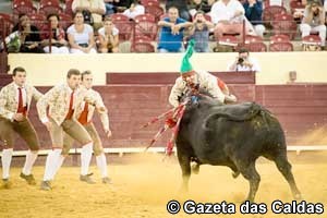 O Grupo de Forcados Amadores de Caldas da Rainha pegou o segundo (624 kg) à 3ª por António Galiano que esteve bem nas três tentativas citando recuando e fechando-se corretamente mas o grupo tardou na 1ª e ajudou mal na 2º. O quarto toiro (615 Kg) foi bem pegado à 2ª por António Cunha que aguentou violentos derrotes, nunca desistindo e levou a melhor bem ajudado. Na 1ª tentativa um inesperado derrote em relação ao solo fez sair o forcado que estivera bem e levou o toiro a fazer um espetacular pino por cima dele. O sexto (642 Kg) foi exemplarmente pegado à 1ª pelo cabo Francisco Mascarenhas, rápido e eficaz a citar recuar e fechar-se bem ajudado, tecnicamente tão perfeito que até pareceu simples.