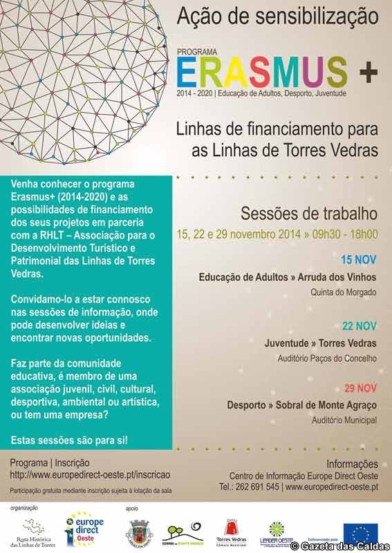 Ao promover as sessões de informação sobre o Programa Erasmus + (2014-2020) para a Educação de Adultos, Juventude e Desporto, a Rota Histórica das Linhas de Torres pretende estabelecer relações de parceria com a sociedade civil, associativa e agentes culturais, dando gratuitamente todo o apoio possível na construção de candidaturas nestas áreas de acção. Os projectos candidatos devem focar a temática das Invasões Francesas e das Linhas de Torres sobre quaisquer abordagens, ou realizarem-se neste território.