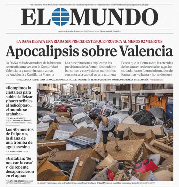 Eis senão quando, no exterior do aeroporto e em toda a região Valenciana, o fenómeno climatérico esperado alterou toda a vida das pessoas e que se começou logo a sentir pela mudança da programação das companhias aéreas que suspenderam sucessivamente todos os voos. Mesmo assim reinava uma ausência de informação cabal sobre o que se passava no exterior.