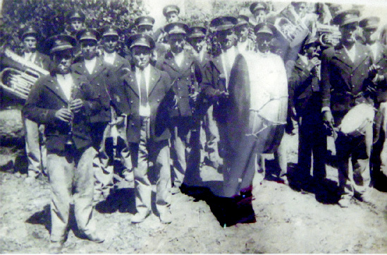 A estrada era de macadame e uma vez por ano vinham os presos da cadeia comarcã das Caldas da Rainha para cavar as valetas. Os carros de mão e as pás-balde eram guardados no nosso quintal. Foi por essa altura que me mandaram brincar para a estrada para que as mulheres pudessem fazer o seu trabalho entre panelas de água quente e lágrimas felizes. Parece que foi ontem; o tempo voa. Eu já tinha outra irmã de dois anos (quase três) tão forte que o meu avô lhe chamava morcela. Pelo contrário esta irmã que nasceu em 19 de Junho foi sempre frágil. No Montijo teve uma gastrite grave e um vizinho nosso que tinha uma taberna (o senhor Ilhéu) emprestou 500 escudos para o que fosse preciso. Nos vivíamos na Rua Sacadura Cabral, perto do cemitério e essa proximidade arrepiava toda a gente. Nunca me vou esquecer de um garoto que foi atropelado no Afonsoeiro por uma motorizada e morreu. A minha irmã mais nova safou-se dessa mas depois vieram outras coisas como a tosse convulsa cujo remédio era um xarope feito artesanalmente com açúcar louro e figos da Índia. Nesse tempo a morte era uma indústria e a vida era um artesanato. Quando vinha a Lisboa no vapor da carreira a minha irmã mais nova só bebia água da bilha que o capitão trazia de um poço particular. Escrevo esta crónica no lugar dos olhos de água de Alcanena num dia de sol e pó e nada melhor para a ilustrar que dois retratos da filarmónica da nossa terra entre sol e pó, uma a preto e branco, a outra a cores. Ontem e hoje, pode ser a legenda. Os mortos empurram os vivos: o nosso tio Joaquim empurra o nosso primo Luís Almeida. Estamos todos nas fotografias. Todos.
