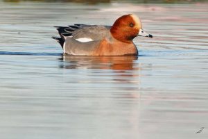 Trata-se de um pato migrador invernante, bastante comum na nossa lagoa, logo a partir de meados de setembro, aumentando progressivamente o numero de indivíduos, sobretudo nos meses de outubro e novembro, chegando a formar bandos de várias dezenas de aves, podendo ser observados até finais de janeiro. Sensivelmente do tamanho do Pato-real, de cabeça arredondada e bico curto de cor cinza-azulado com ponta preta; com a sua plumagem inconfundível de tons, cabeça e pescoço castanho-avelã; testa e coroa amarelo-torrado; peito rosa-acinzentado; o resto do corpo cinzento e branco, como é o caso deste belo macho reprodutor da imagem.