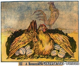 Agora o que eu sei é que no seu último jornal, «A Paródia», Rafael Bordalo Pinheiro retratou o estado da economia de um modo magistral e com uma actualidade impressionante; desenhou uma galinha a que chamou «A Economia – a Galinha Choca».