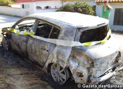 A foto documenta o estado em que ficou um Renault Mégane que ardeu na noite de 13 para 14 de Março numa rua residencial...