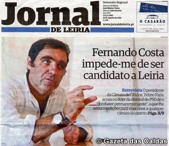 O presidente da Câmara de Óbidos, Telmo Faria, disse em entrevista ao Jornal de Leiria, com grande destaque na capa do jornal, que o...