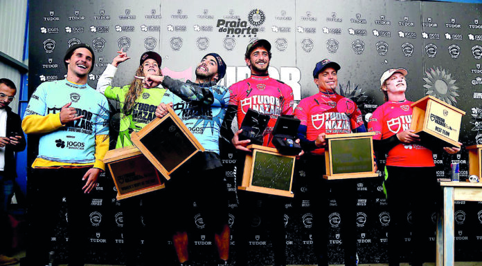 O brasileiro Lucas Chianca, que formou equipa com Lucas Lenny, venceu o Nazaré Challenge, prova da WSL que se realizou na Praia do Norte,...