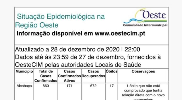 Após dois dias sem atualizar os dados, a Comunidade Intermunicipal do Oeste divulgou, este sábado, o relatório epidemiológico da região, com o número de...
