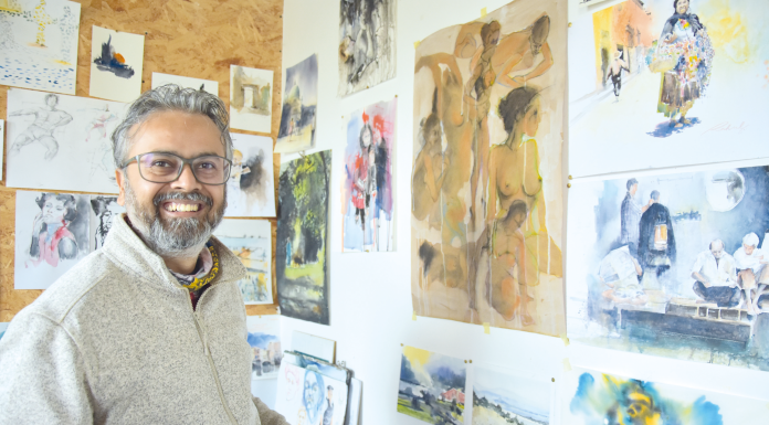 O pintor indiano tem o seu estúdio nos Silos desde 2023. O artista internacional, também professor, ensina nas Caldas e vai dar workshops em...