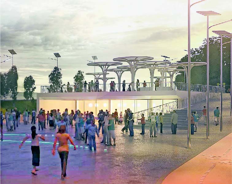 Para aquela zona é proposto um jardim da ciência, parque de merendas, parque infantil, academia ao ar livre, uma praça de acolhimento e torres com alguma dimensão, onde será colocada uma cafetaria. Haverá uma, com cerca de 18 metros, que será visível da A8. Serão criados locais para concertos e actividades ao ar livre e construídas instalações sanitárias públicas e pérgulas de ensombramento (fotovoltaicas) que fazem a captação da energia solar.