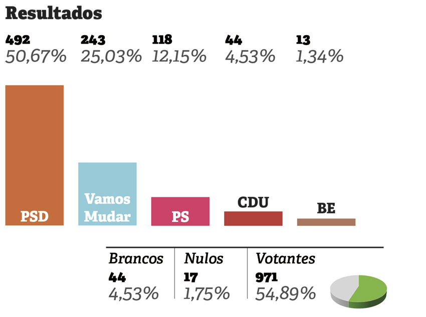 O movimento Vamos Mudar conseguiu dois mandatos e tornou-se na segunda força política numa freguesia tradicionalmente laranja, enquanto o PS baixou a votação e ficou apenas com um elemento na Assembleia de Freguesia. ■