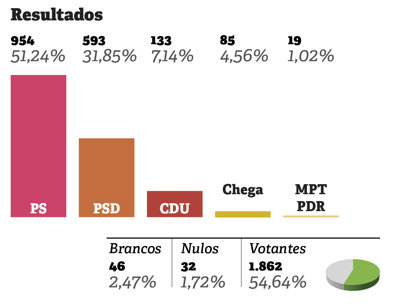 Os socialistas mantiveram a liderança da Junta de Freguesia de Santa Maria, São Pedro e Sobral da Lagoa. O recandidato João Rodrigues agradou a mais de metade do eleitorado e elegeu seis dos nove lugares da Assembleia de Freguesia. Os socialistas diminuíram a votação obtida há quatro anos, descendo dos 1.093 para 954 votos. O PSD subiu, obteve 31,85% dos votos e consegue alcançar três lugares. Os restantes concorrentes, CDU, O Nosso Partido é Óbidos e Chega não conseguiram eleger representantes. ■