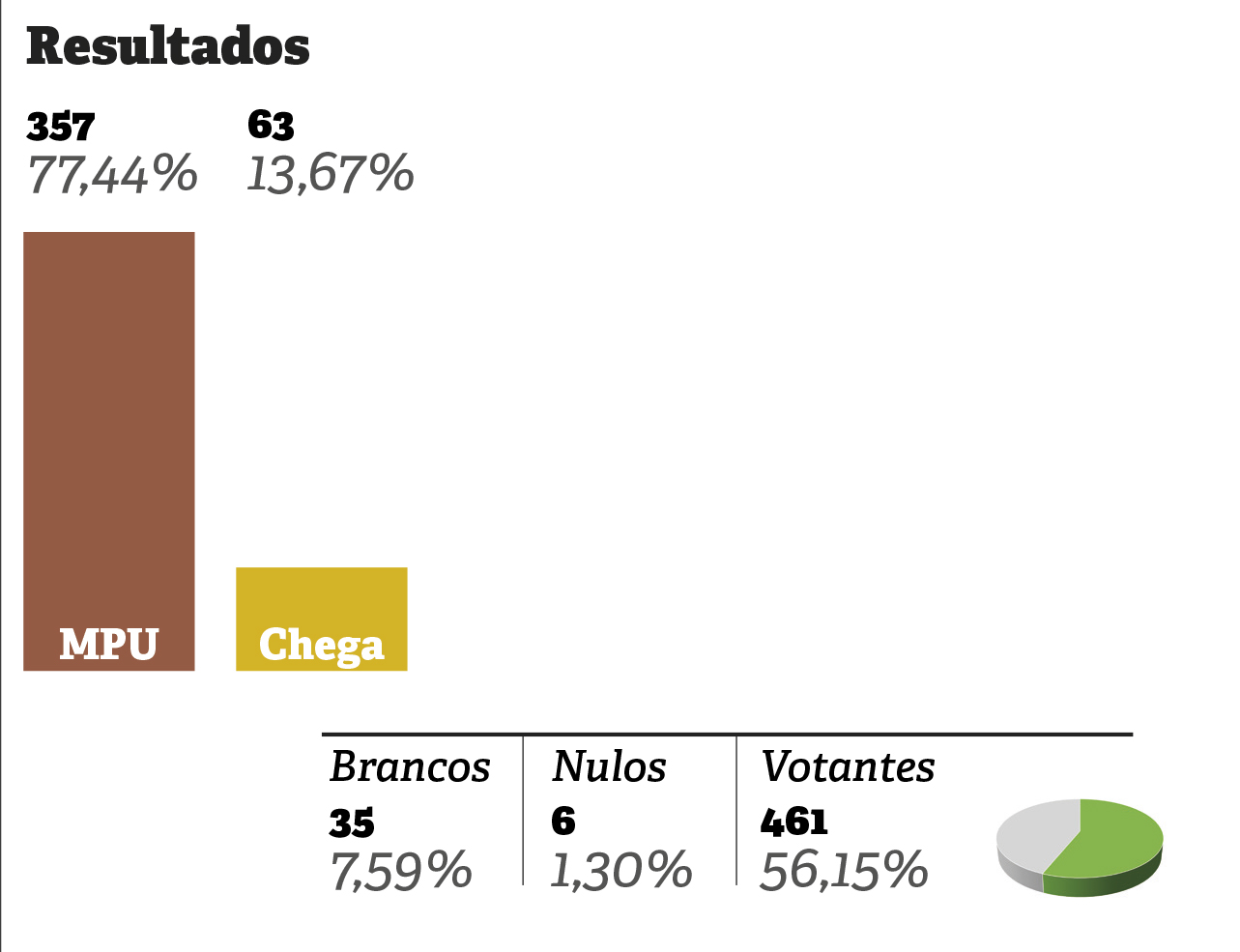 Dionísia Félix manteve a freguesia da Usseira para o Movimento pela Usseira (MPU). A repetente venceu à estreante Susana Sousa (Chega), num ato eleitoral em que eram duas as candidatas à liderança deste orgão autárquico. A recandidata obteve 357 votos, enquanto a sua adversária conquistou 63. O MPU alcançou 77% do eleitorado e elegeu seis elementos para a Assembleia de Freguesia, contra um elemento, eleito pelo Chega. O MPU conquistou a Junta em 2017 tendo ganho ao PSD. ■