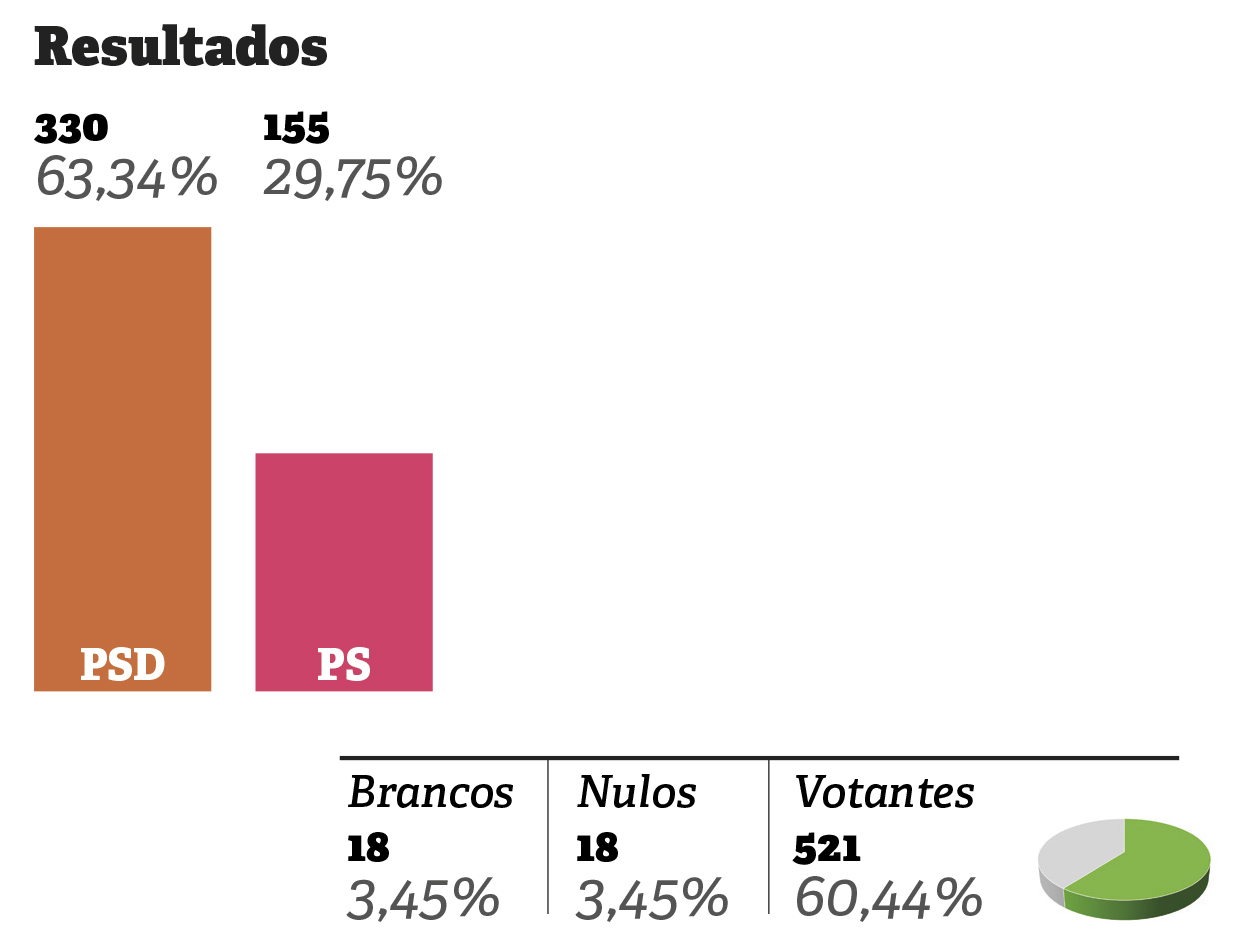 Frederico Lopes reforçou a votação de há quatro anos à frente dos destinos do Vau, com o voto de 63,34% dos eleitores daquela freguesia. O PSD disputou a eleição apenas com o PS, encabeçado por Pascal Carvalho, que obteve perto de 30% dos votantes. Os social-democratas conseguiram 5 lugares na assembleia de freguesia, enquanto que os socialistas alcançaram dois mandatos. Há quatro anos, contra um independente, o partido laranja conseguiu obter acima de 50% do voto dos eleitores. ■