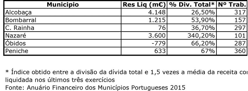 Os serviços municipalizados de Peniche estão em 11º lugar da lista, com um resultado de 871 mil euros, os de Alcobaça em 16º, com 272 mil euros, e os da Nazaré em 17º, com 240 mil euros.