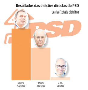 Porém, ninguém saiu a ganhar do acto eleitoral interno dos sociais-democratas, dado que Rui Rio, apesar de ter perdido na Distrital de Leiria, venceu as eleições a nível nacional e ficou, aliás, à beira do triunfo à primeira volta (49,02%), superando os opositores Montenegro (41,42&%) e Pinto Luz (9,55%).
