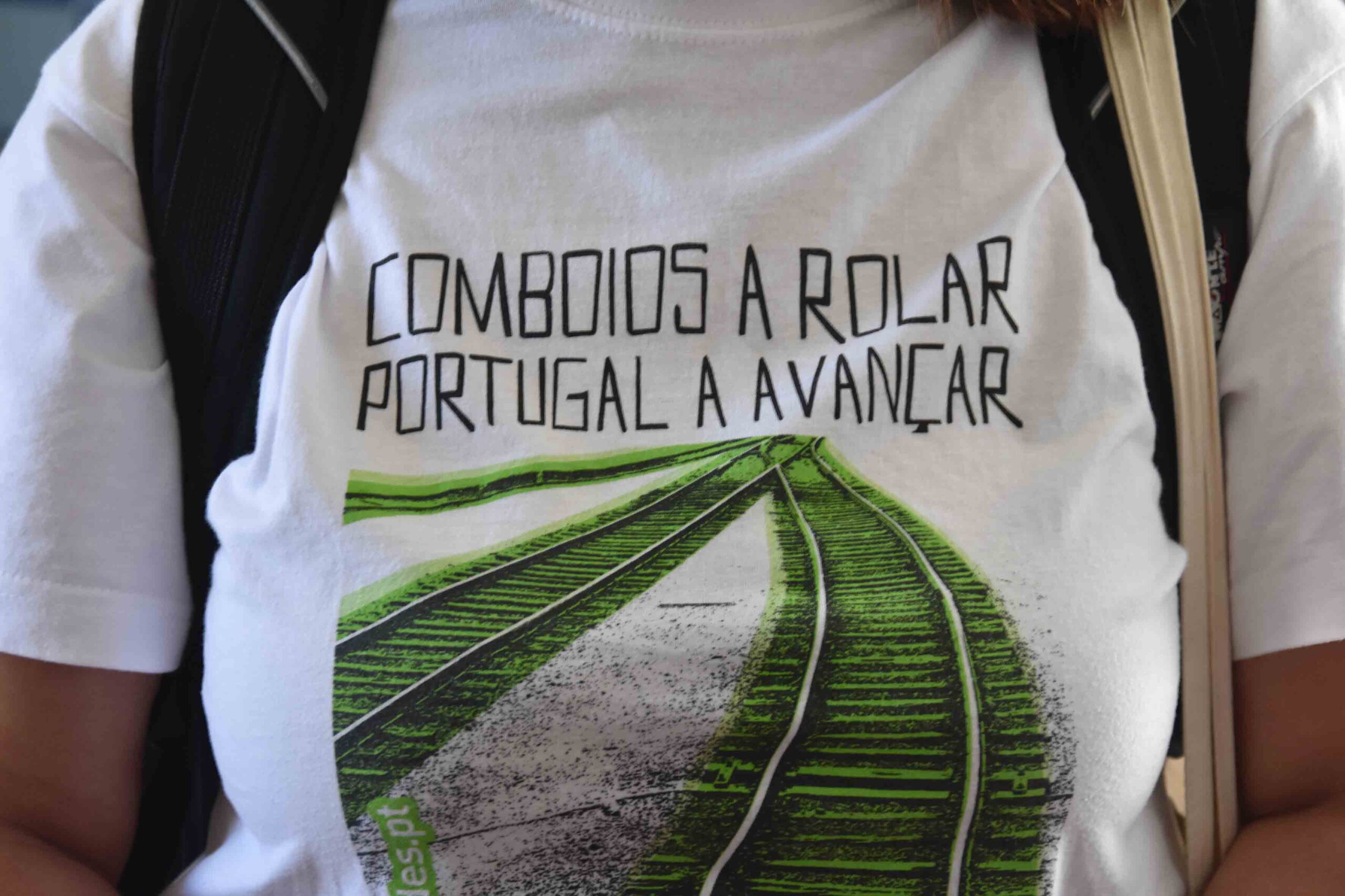 As t-shirts que ostentam, brancas com as linhas dos carris e o slogan “Comboios a rolar, Portugal a andar” são de 2011, mas continuam actuais. Os Verdes já tinham feito a acção a nível nacional nesse ano e agora, sete anos depois, voltam para fazer um novo diagnóstico da ferrovia. E não é positivo.