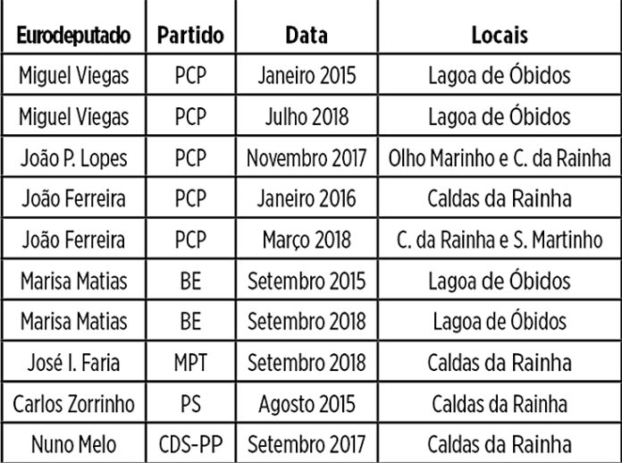Em cinco anos de legislatura apenas três eurodeputados do PCP, um do BE, um do PS, outro do Partido da Terra – MPT e ainda um do CDS-PP, estiveram em acções nos concelhos das Caldas da Rainha e Óbidos.