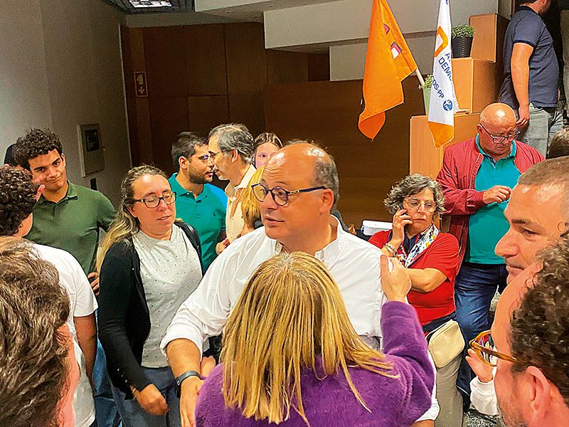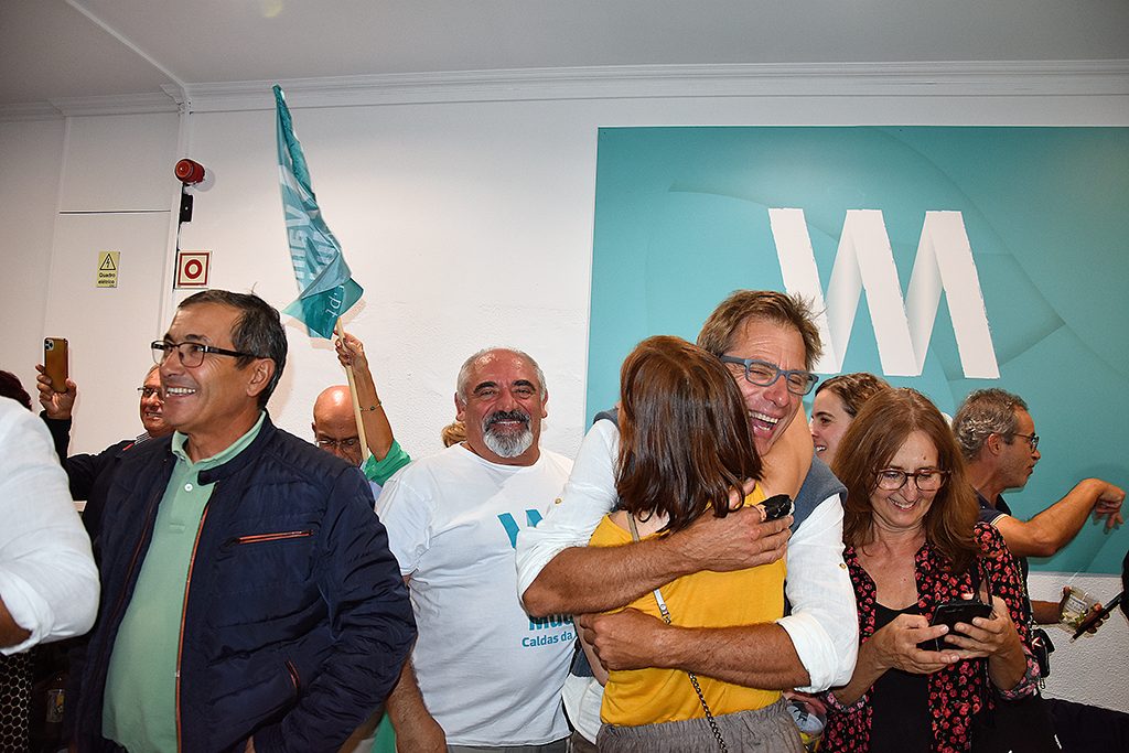 Na sede de campanha da AD – Somos Caldas, na Praça da República, o ambiente ao longo da noite foi sereno. Ao mesmo tempo que se iam assinalando vitórias nas freguesias, em particular a da Foz do Arelho conquistada ao fim de três mandatos de Fernando Sousa, pelo MVC e pelo MIFA, para a Câmara houve sempre noção que o resultado podia pender para qualquer um dos lados e que a diferença seria escassa.