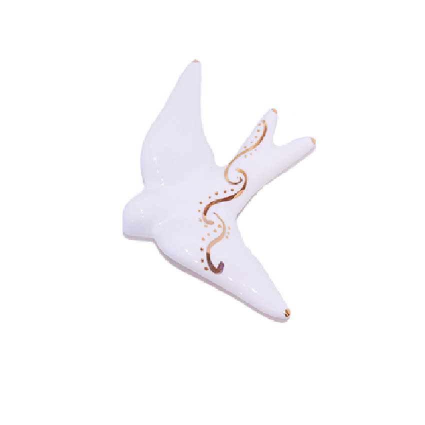 Andorinha Média em cerâmica, branca e decorada em dourado. Podem encontrar mais peças da ceramista na nossa loja.