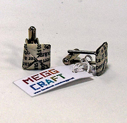 Pode ser adquirida, nas nossas instalações, bijuteria feita em origami como pregadeiras, brincos, anéis e até botões de punho de um design invulgar, feitos com o próprio papel de jornal transformado. A ideia é de Emília Gonçalves responsável pela marca MEGG Craft e que desenvolve interessantes propostas de origami (dobragens), que dão uma nova vida às folhas de papel deste periódico quando perdem a actualidade.